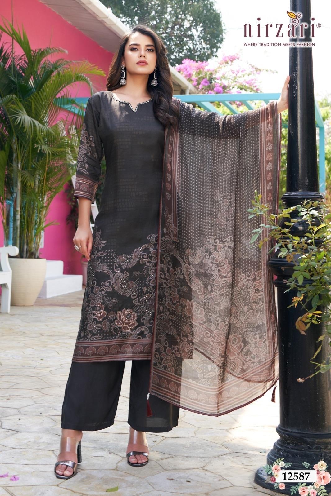 Embrace earthy elegance with Nirzari’s Brown Dola Silk 3-Piece Kurti Set. Crafted from smooth and lustrous Dola Silk fabric, this ensemble features a beautifully stitched kurti, coordinating pant, and matching dupatta. The warm brown shade adds depth and sophistication, perfect for festive occasions, cultural gatherings, or evening celebrations. Soft on the skin and tailored for comfort, this outfit combines luxury and tradition effortlessly.